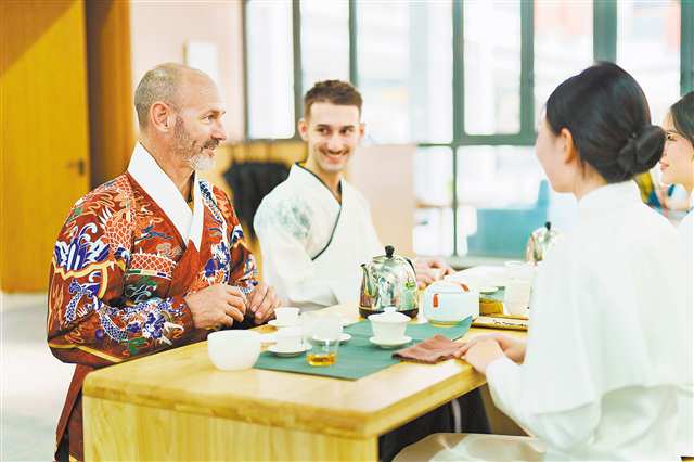 6月26日,重慶五一職業技師學院,參加第二屆“一帶一路”國際技能大賽的嘉賓在體驗中國茶文化。記者 李雨恒 攝/視覺重慶