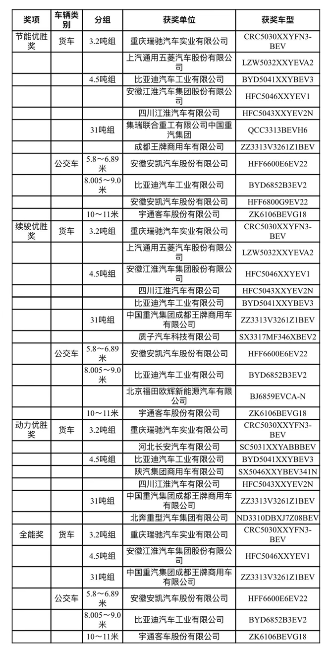 全國新能源商用車性能評價賽落幕 14家車企16款車型獲獎