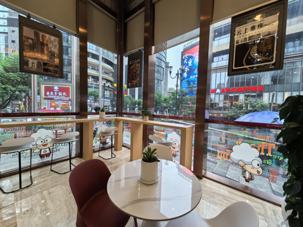 與此同時,該行還著眼于提升客戶的休息體驗,在硬件配置和軟裝設計上對休息區進行了精心設計與改造。以“休息充電”為主題新增的充電設施、舒適的休息座椅以及豐富的茶歇服務,為客戶提供了極大的便利。此外,休息區內的特色軟裝設計,如多國語言問候的玻璃貼、趣味雙語讀物展架以及主題景點海報、重慶輕軌地圖、川渝旅游攻略,更是讓境內外客戶在享受服務的同時,感受到銀行的貼心與用心。