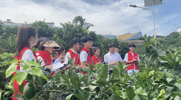 當地村民為志愿者講解臍橙的種植流程。重慶城市管理職業學院供圖