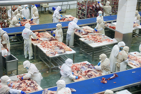 恒都農業集團的肉牛屠宰加工生產線。向詩佳攝