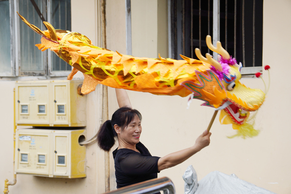 李月華現場表演舞龍。張笑涵攝
