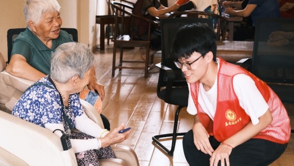 宣講員張鴻凱在養老院開展普法宣傳。西南政法大學供圖