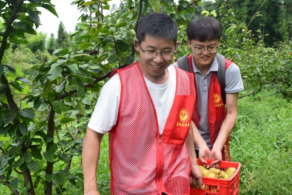 經過統籌安排,團隊師生重點開展了農業生產和基層治理這兩項崗位體驗活動。在放牛坪村,成員們化身“新晉果農”,學習基本的農業知識,并在當地種植戶的指導下參與脆梨的采摘工作。在金剛村,大家跟隨兩名青年村干部開展日常工作,進行拔草護綠、打掃養老院衛生等崗位實踐,體驗了“大學生村官”的一天。
