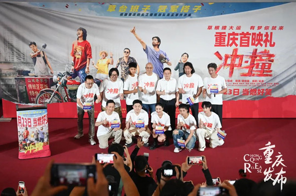 8月10日,根據重慶碼頭工橄欖球隊真實事件改編的喜劇動作電影《沖撞》在重慶舉行首映禮,影片原型人物重慶碼頭工橄欖球隊隊員與電影主創一同現身,夢幻聯動。