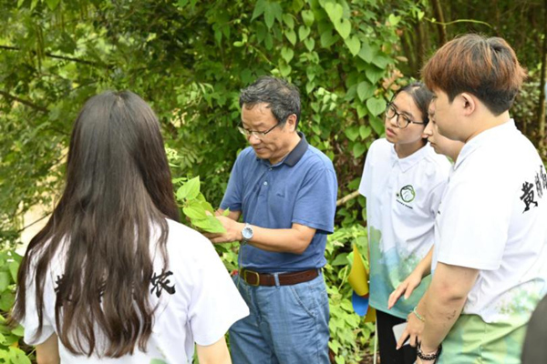 鄉野為講堂,藥草作教材。實踐團前往長壽區石堰鎮朝陽村,在何先元教授帶領下調研中藥材種植情況。團隊成員深入林下種植基地,實地考察黃精的種植環境,參與田間管理,進行專業技術指導,主動將所學到的技術創新理念融于黃精種植產業升級過程中,以智賦能中藥材產業鏈發展。
