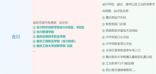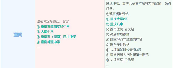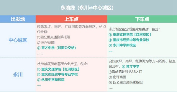 此外,在大巴車線路方面,8月26日起,陳家坪汽車站將陸續在原雙橋、永川、榮昌等線路上,分別新增重慶科技職業學院、雙橋工程學院、重慶水利電力職業技術學院、重慶第二財貿學校、大成中學等??奎c。
