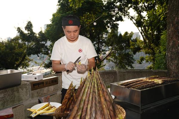 活動現場還一同舉辦了珮姐秋筍發布會,為了讓到場嘉賓能多維度地感受方竹筍的鮮美,珮姐廚師長采用“燒剝筍”這種最為原生態的方式,現場烤制當日采摘未經剝殼的鮮筍。這種烹飪方式,最大程度地保留了竹筍的香氣與清甜口感,一口還原大自然的淳樸真味。