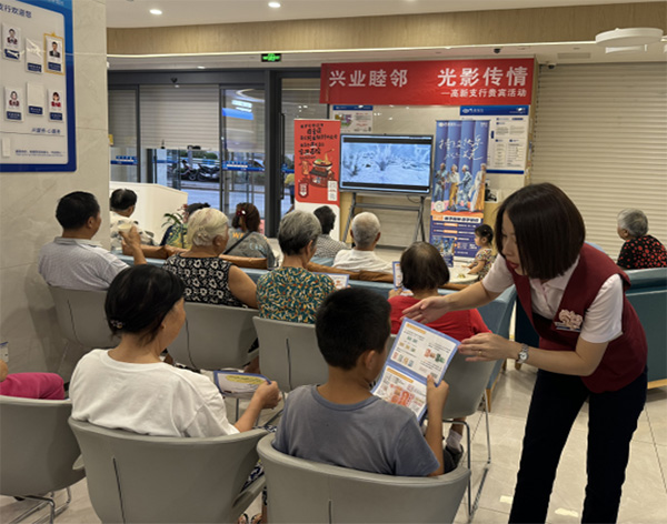 興業銀行重慶分行立足網點,充分利用“點多面廣”的優勢,以營業網點為宣傳陣地,營造良好的宣傳氛圍。在轄內60家營業網點門楣和LED跑馬屏布放宣傳橫幅、活動名稱和口號,擺放消費者教育宣傳折頁、手冊等材料。利用客戶辦理業務的等待時間,開展廳堂“微沙龍”,結合“反電詐”“征信修復”等熱點,密切圍繞電信網絡詐騙、代理投訴、征信知識等內容,提示客戶保護自身財產安全和合法權益。同時提供充足的適老設施幫助老年人、殘障人士群體便捷使用優質化產品,持續做好金融服務的適老性、普惠性服務。