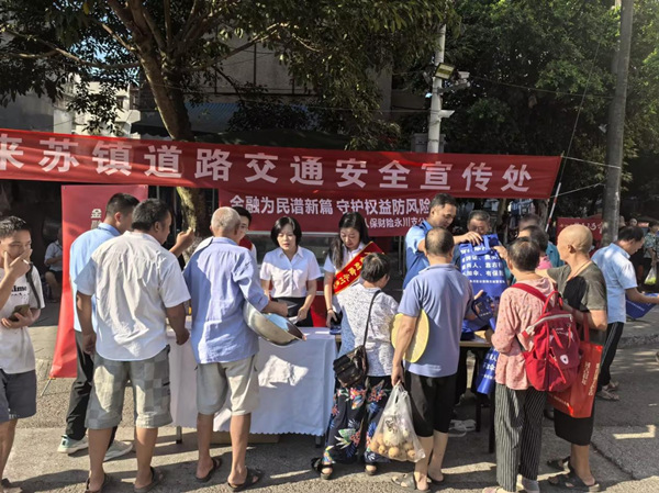 在永川,人保財險重慶分公司聯合永川區公安局交巡警支隊走進來蘇鎮來蘇街道,針對村里老年群體開展“金融為民譜新篇 守護權益防風險”暨道路安全教育宣傳活動,通過講解養老詐騙案例,引導老年群體識別、防范、應對金融詐騙,同時叮囑大家駕駛三輪車不違載、不超員、戴頭盔、靠右行,保障自己的財產安全和生命安全。