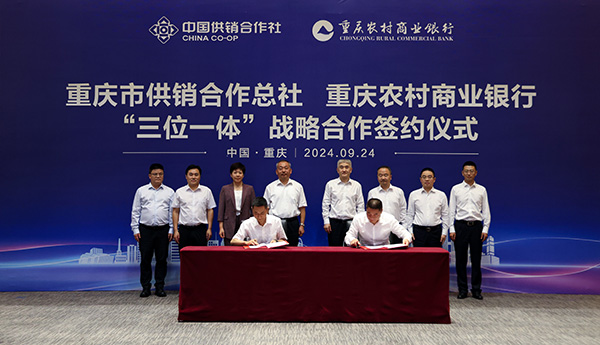 9月24日,重慶農村商業銀行(以下簡稱“重慶農商行”)與重慶市供銷合作總社簽署生產、供銷、信用“三位一體”戰略合作協議。
