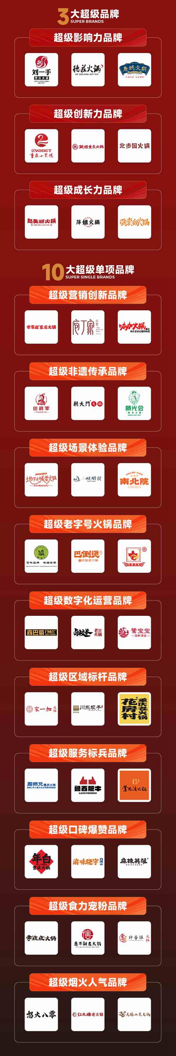 在評選中,德莊火鍋、劉一手火鍋以及秦媽火鍋憑借其廣泛的市場影響力獲得“超級影響力品牌”獎項;珮姐重慶火鍋、重慶小天鵝火鍋以及北步園火鍋因持續的產品創新摘得“超級創新力品牌”稱號;而萍姐火鍋x公路夜市、趙美麗火鍋以及張崇會火鍋則在“超級成長力品牌”評選中脫穎而出。