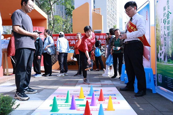 活動現場,老年人參與金融知識套圈游戲。招商銀行重慶分行供圖