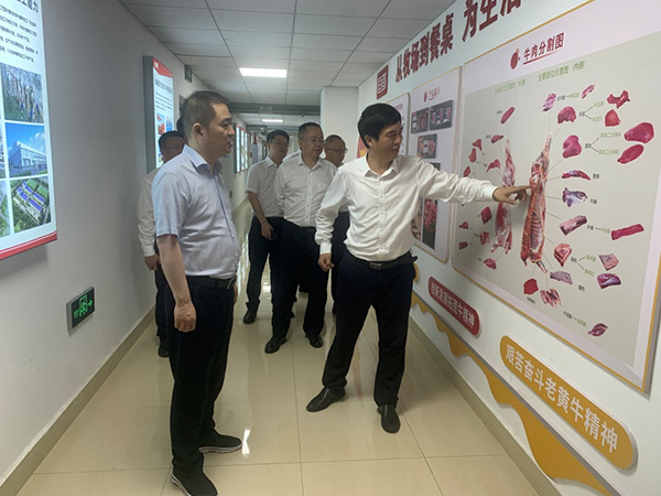 重慶三峽銀行黨委書記、董事長劉江橋(左1)調研牛肉加工企業。重慶三峽銀行供圖