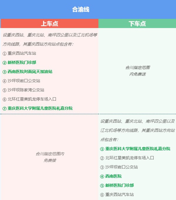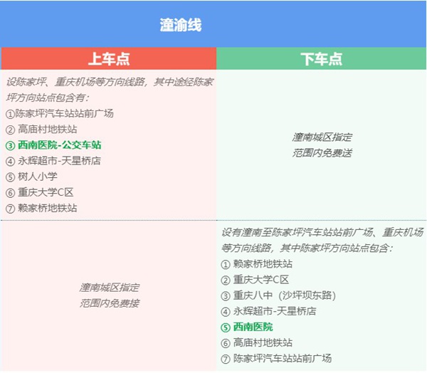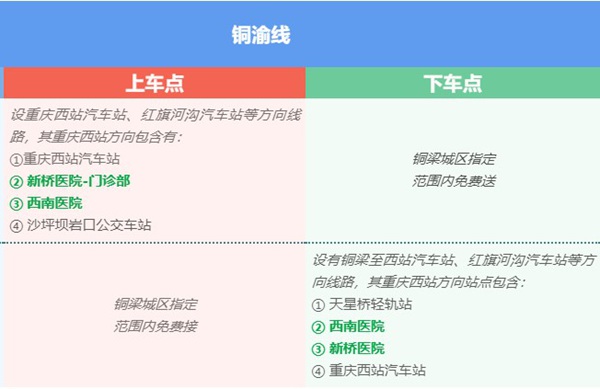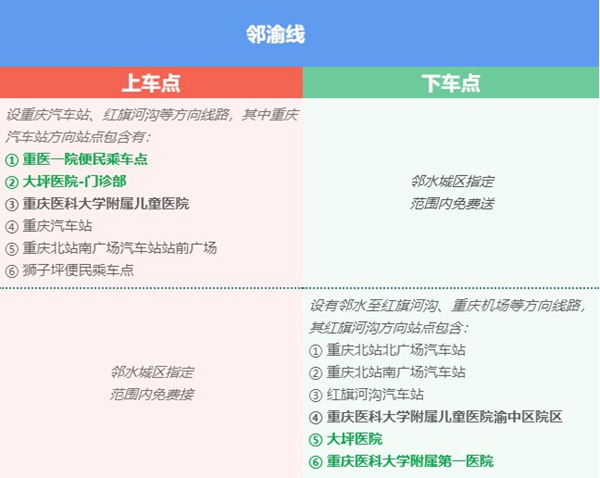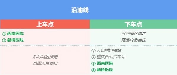 10月24日,愉客行發布了途經醫院的班車線路,方便市民出行就醫。這些班車線路途經西南醫院、新橋醫院、兒童醫院、大坪醫院、重醫一院、婦幼保健院等。