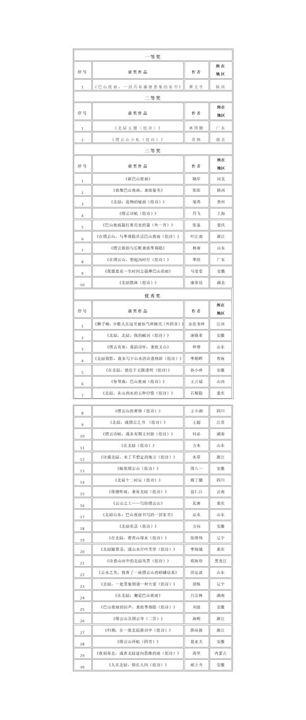 第五屆“巴山夜雨”詩歌獎獲獎名單揭曉