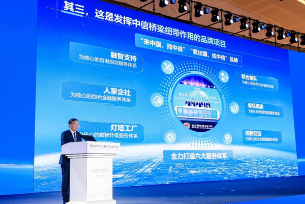中信集團上個月發布了“來中國、找中信”“要出國、找中信”品牌。張文武表示,中信將全力打造“融智支持”為核心的咨詢規劃服務體系、“人家企社”為核心的綜合金融服務體系、“燈塔工廠”為核心的數智升級服務體系、“聯合艦隊”為核心的協同合作服務體系、“綠色低碳”為核心的轉型發展服務體系、“創新交流”為核心的生態賦能服務體系等六大服務體系,努力以“中信所能”聚焦各方所需,當好新時代中外經貿合作的橋梁紐帶。此次舉辦“德國先進制造企業重慶行”活動,也是“來中國、找中信”“要出國、找中信”品牌發布后的新探索、新實踐。