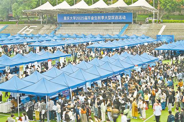 10月18日,重慶大學A區思群廣場,重慶大學2025屆畢業生秋季大型雙選活動舉行。來自全國各地各行業的500家用人單位進校攬才,提供3萬余個就業崗位,吸引了校內外1萬余名畢業生入場求職。(資料圖片)記者 鄭宇 李志峰 攝/視覺重慶