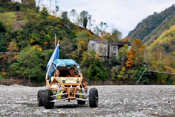 場內看比賽,場外逛展會。圍繞比賽,修齊鎮專門開設了“土特產”展區,在河灘上設置了80余處美食試吃點,老臘肉、食用菌、干筍子等農特產品供不應求。不僅如此,利用河灘,修齊還開設了沙灘車等娛樂設施。觀眾們既飽眼福,又飽口福,還能娛樂,不亦樂乎。