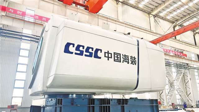 中船海裝自主研發的18兆瓦海上風電機組。(資料圖片)