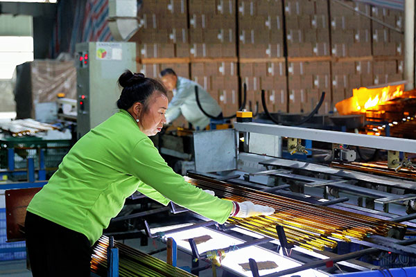 在重慶三豐玻璃有限公司制瓶車間,原料熔化成液,成型機精準壓制,每一條玻瓶生產線均處于滿負荷狀態。一支支棕黃色玻瓶順著傳送帶向前移動,經質檢員逐一審視,最終檢驗包裝。