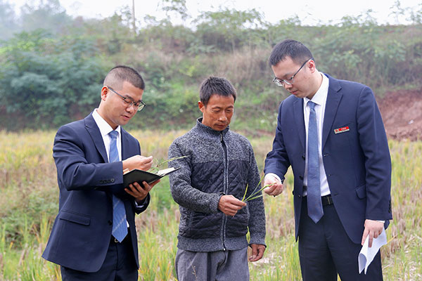 作為土生土長的白鶴村人,余大兵從事水稻種植工作已有多年?!跋啾扔诔R幍镜姆N植,制種水稻收益更高,20畝地一年能增收8萬元,但風險也更大?!笔芙衲旰闉募俺掷m高溫干旱天氣影響,余大兵田里稻種幾乎絕收,急需資金購買作物。得益于金融網格化營銷模式,重慶農商行墊江支行永安分理處及時了解到該情況,第一時間上門走訪,詳細講解產品特點及還款方式,當天便針對水稻制種為其發放渝快鄉村貸-水稻制種貸6萬元。