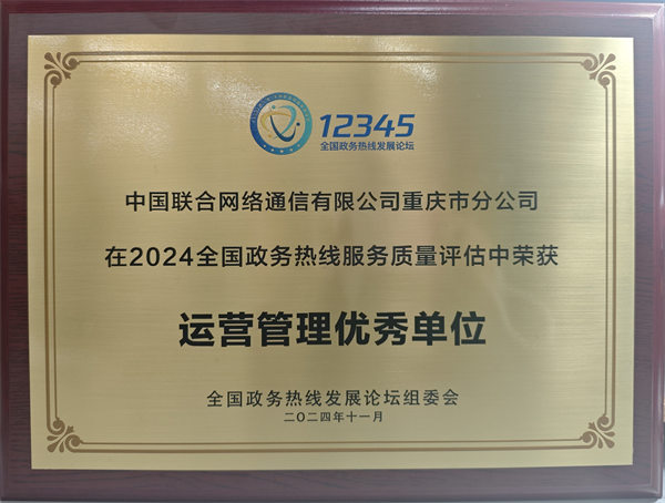 近日,重慶聯通在2024(第六屆)全國政務熱線發展論壇上獲評“運營管理優秀單位”稱號,由重慶聯通運營管理的重慶市12345熱線也在此次評估中獲得了“A”級評價。