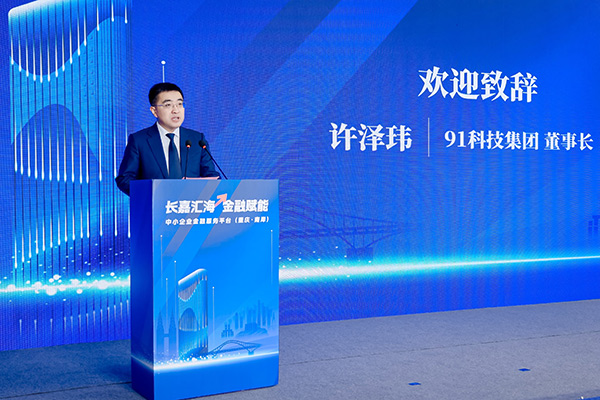 91科技集團創始人、董事長、CEO許澤瑋致歡迎辭,他表示,91科技集團自成立以來,一直專注于通過先進的金融科技技術為中小企業提供安全、便捷的全方位金融服務。此次在重慶南岸區設立重慶公司,并發布中小企業金融服務平臺,是雙方戰略合作的重要成果。未來,該平臺將繼續依托政策和區位優勢,強化金融服務屬性、控制安全邊際,加強技術創新以提高效率,引入更多金融機構來渝開展業務,支持重慶中小微企業高質量發展。