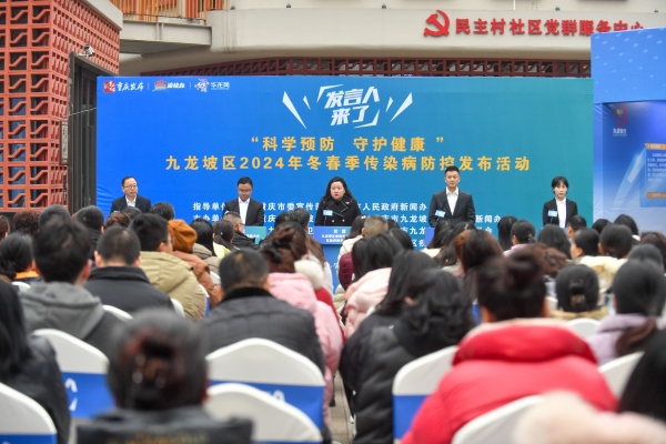 12月21日,“科學預防 守護健康 ”九龍坡區“發言人來了”冬春季傳染病防控發布活動在謝家灣街道民主村建設渠廣場舉行。來自九龍坡區衛生健康委、區教委、區人民醫院、區疾控中心的5位發言人聚焦群眾關心的流感、肺炎等熱點問題,與人民群眾面對面,以“你提問,我回答”的對話形式,開展信息發布和政策解讀。