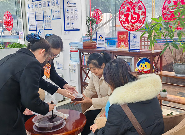 建行重慶北環支行舉辦“臘八節知識小課堂”,為到店老年客戶提供金融服務和宣講防范電信網絡詐騙的同時,送上溫暖新年大禮包,在細微之處做好暖心服務,讓客戶在享受金融服務中體驗更多幸福感、獲得感和安全感。當天,“送福字、貼春聯”文化活動在建行重慶金福支行和水木年華支行同時展開,參與的市民都可以免費領取到心儀的福字和對聯,感受濃濃年味。