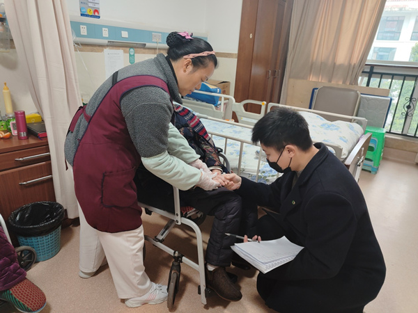“我爸爸是外出摔傷,坐上了輪椅?,F在每個月護理人員上門服務3次,還能攙扶著起身走幾步路了。真是新年最開心的事!”何力的兒子說,看著父親更加健康的狀態,由衷地感到欣慰。