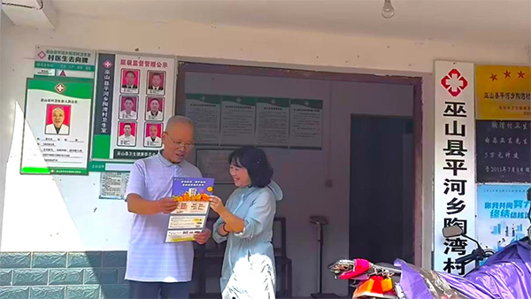 駐村工作隊員向村民推介普惠金融產品。重慶三峽銀行供圖