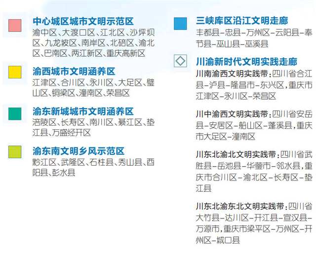 ●兩個涵養區,即渝西城市文明涵養區、渝東新城城市文明涵養區;