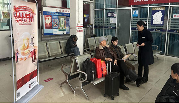 中行萬州分行、璧山支行以車站為宣傳陣地,為返鄉、返工群眾開展金融知識宣傳,向群眾發放金融知識等相關宣傳資料,并通過以案說險、風險提示的宣傳形式,耐心地為在場的群眾普及金融知識,幫助客戶正確認識金融產品和服務。