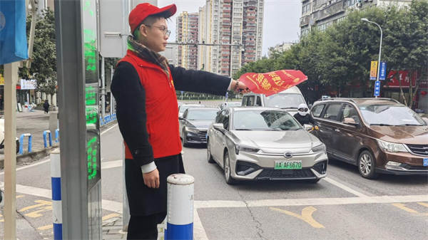 商業呼叫運營中心“沃小渝”志愿服務隊則在沙坪壩區森林實驗小學門口開展文明出行倡導活動,提升市民安全意識。