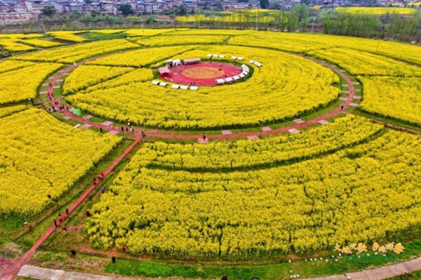 情景推介《菜花景區我來夸》為現場以及在線觀看直播的觀眾們帶來了一片花海。潼南油菜花正值盛花期,上萬畝金黃油菜花綻放。據悉,3月8日-9日兩天接待游客超16萬人次。