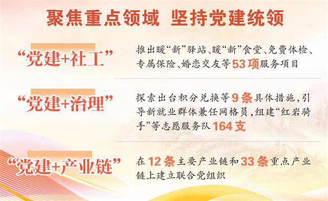 近年來,重慶堅持黨建統領,聚焦產業鏈升級、新就業群體服務、基層治理創新等重點領域,積極探索“黨建強鏈、服務暖心、治理增效”的實踐路徑。