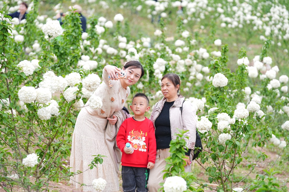 4月6日,北碚區復興街道漫花山田農業公園,游客在此踏青賞花,拍照留念。特約攝影 秦廷富