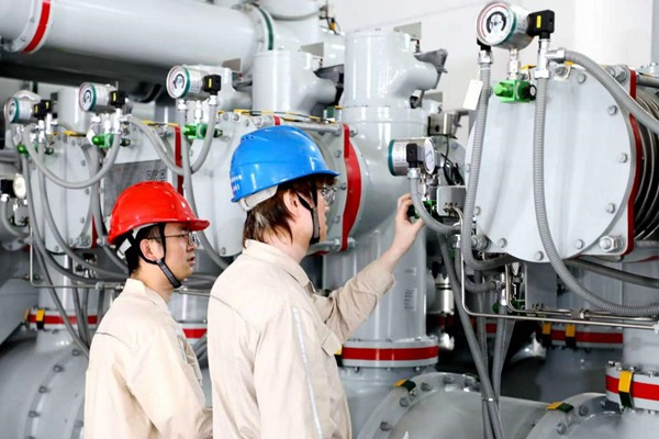 值得一提的是,許溪變電站組合電器在技術應用上取得了創新突破。據該公司榮昌變電集控站站長助理江南希介紹,該變電站采用了新型混合氣體設備,將六氟化硫氣體與氮氣結合組成混合氣體,能有效消除電弧。與傳統GIS設備相比,這種新型設備更加經濟環保,能夠減少70%的六氟化硫氣體用量,每年可減少二氧化碳排放量約1萬噸,既實現電力安全供應,也積極響應“雙碳”目標落地。