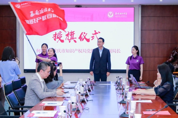 4月15日,西南政法大學知識產權宣講團成立儀式暨知識產權法治發展報告會在該校渝北校區舉行。重慶市知識產權局副局長何培育為宣講團授旗。