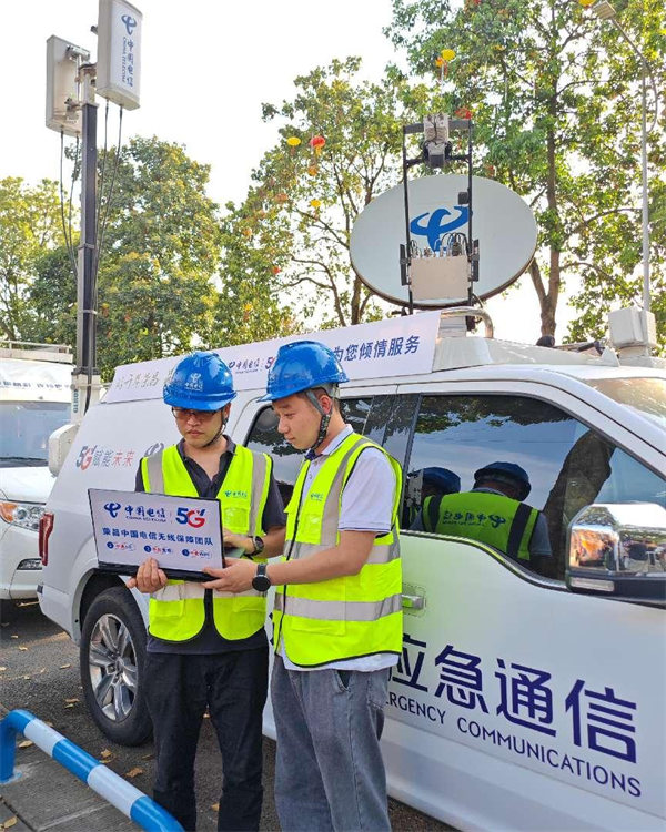 作為此次活動的通信保障主力單位及網絡直播的唯一承接單位,中國電信榮昌分公司(以下簡稱:榮昌電信)提前做好充分準備,制定詳細的通信保障方案,并成立了由技術骨干組成的專項保障團隊。直播開始前,公司提前針對活動區域的18個5G扇區和14個4G扇區進行擴容和優化部署,確保高密度人流區域通信暢通。在夏布小鎮現場特別部署了應急通信車和應急方艙,并設立“現場值守+后臺監控”的雙重保障機制,實時監測網絡運行狀態,及時調整網絡資源配置,確保了通信質量和網絡穩定性。