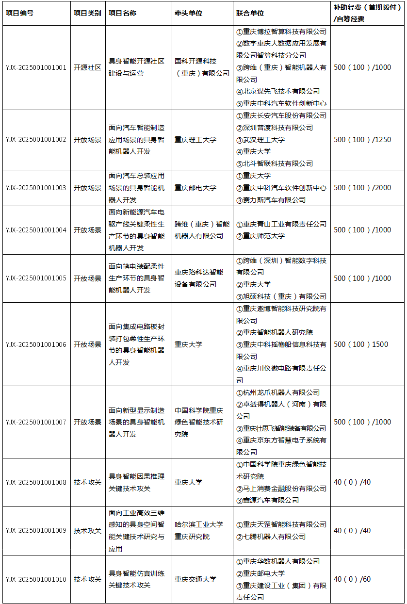其中,哈爾濱工業大學重慶研究院作為牽頭單位揭榜“面向工業高效三維感知的具身空間智能關鍵技術”項目,重慶中科搖櫓船信息科技有限公司(下稱“中科搖櫓船”)、重慶博拉智算科技有限公司(下稱“博拉智算”)作為聯合單位分別參與揭榜“面向集成電路板封裝打包柔性生產環節的具身智能機器人開發”和“具身智能開源社區建設與運營”項目。