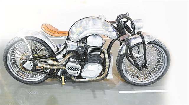 重慶安第斯摩托銷售有限公司展出的1200 cafe racer概念車,造型復古且擁有后現代設計語言,搭載1200CC發動機,動能強勁。另一款外貿型的Flamingo 700火烈鳥摩托車則采用超長軸距搭配V型雙缸發動機、超寬后輪,回頭率極高。
