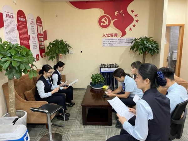 南坪長生橋支行黨支部開展張富清精神專題學習。建行重慶市分行供圖