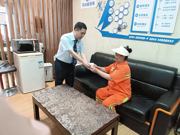 萬州百安支行“勞動者港灣”為環衛工人提供飲水。建行重慶市分行供圖