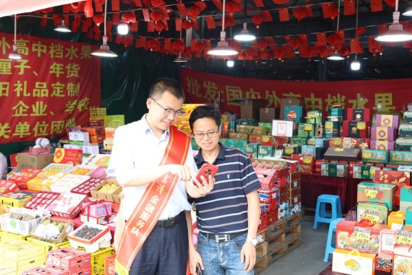 江津支行張富清服務隊走進雙福農貿市場開展金融服務活動。建行重慶市分行供圖