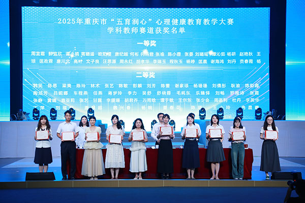 開幕式上通報了2025年重慶市“五育潤心”心理健康教育教學大賽評選結果,為獲獎的心理健康教師、班主任、學科教師代表頒獎。