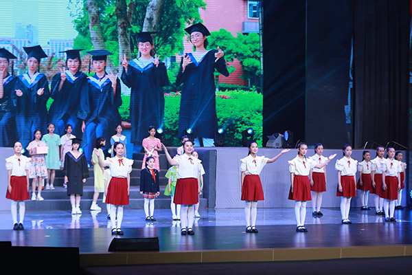 在“五育潤心 重慶力量”舞臺展演區,一場由重慶兩江新區各中小學精心編排的“以美潤心 向美而行”兒童青少年智慧心育匯報展演精彩上演。展演通過“尋找自己”“ 芝麻開門”“ 向陽而生”三個篇章,以情景劇、現代舞、創意朗誦、戲劇、情景歌舞、音樂劇、合唱等形式,帶領觀眾回溯心靈成長的軌跡。