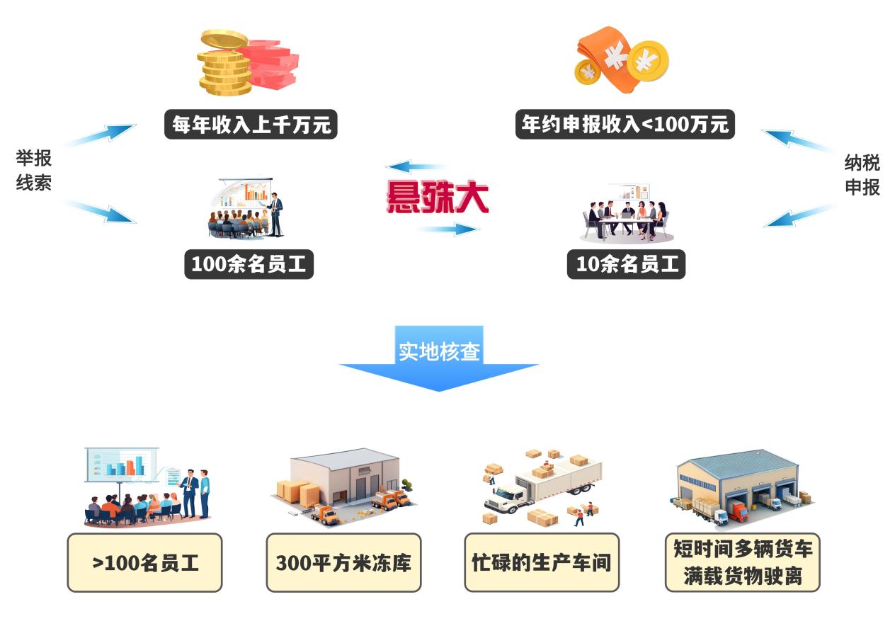 通過現場核查,檢查人員確認了該公司的員工、場地、銷售等情況與舉報內容基本相符,存在隱匿未開票收入、偷逃稅款的嫌疑,依照法定程序,國家稅務總局重慶市稅務局第一稽查局對該公司進行立案調查。
