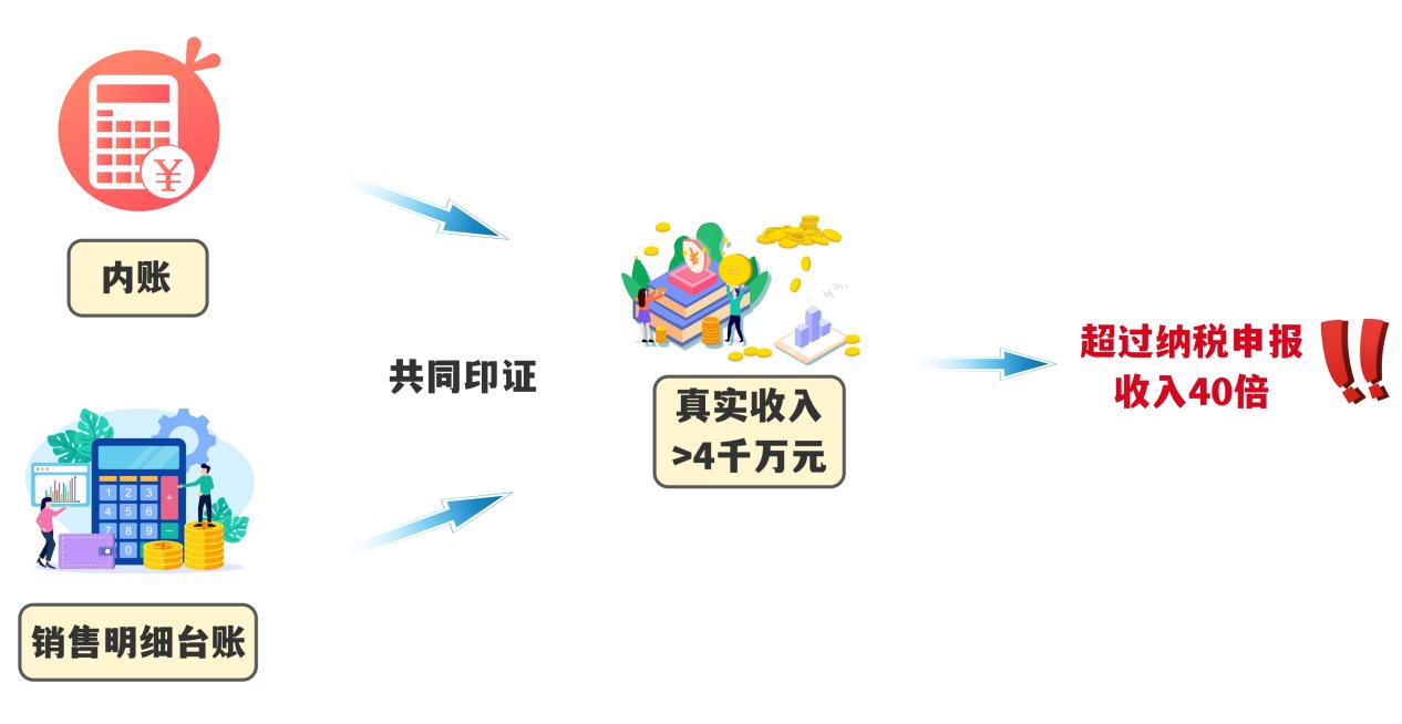 為弄清事實真相,檢查人員依法檢查公司財務人員電腦,發現有內外兩套電子賬簿:外賬記錄的收入與申報數據相同,而內賬記錄的經營情況與舉報線索提及的規模特征基本一致。同時,倉庫管理人員電腦里的銷售明細臺賬詳細記錄了超4千萬元的貨品銷售數據,超過納稅申報收入的40倍,與內賬高度吻合。